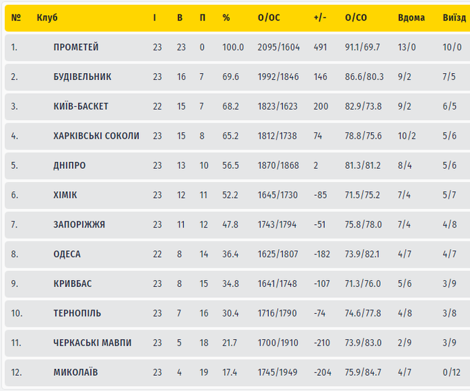 Будивельник: Гордон 24 + 15 подборов, Близнюк 12, Браун 8, Стоктон 6 + 7 передач, Кондраков 0 — старт, Рэндл 24 + 6 передач, Конев 2 + 2 перехвата, Гудвин 2, Кобец 0.