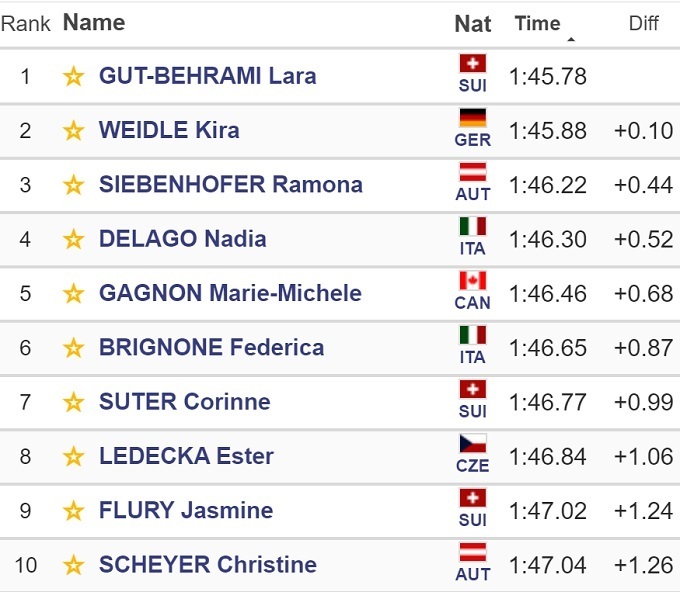 Швейцарская горнолыжница Лара Гут-Бехрами выиграла скоростной спуск на этапе Кубка мира в австрийском Альтенмаркт-Цаухензее. Софья Годжа сошла с дистанции и прервала свою серию из 7 подряд побед в скоростных спусках.