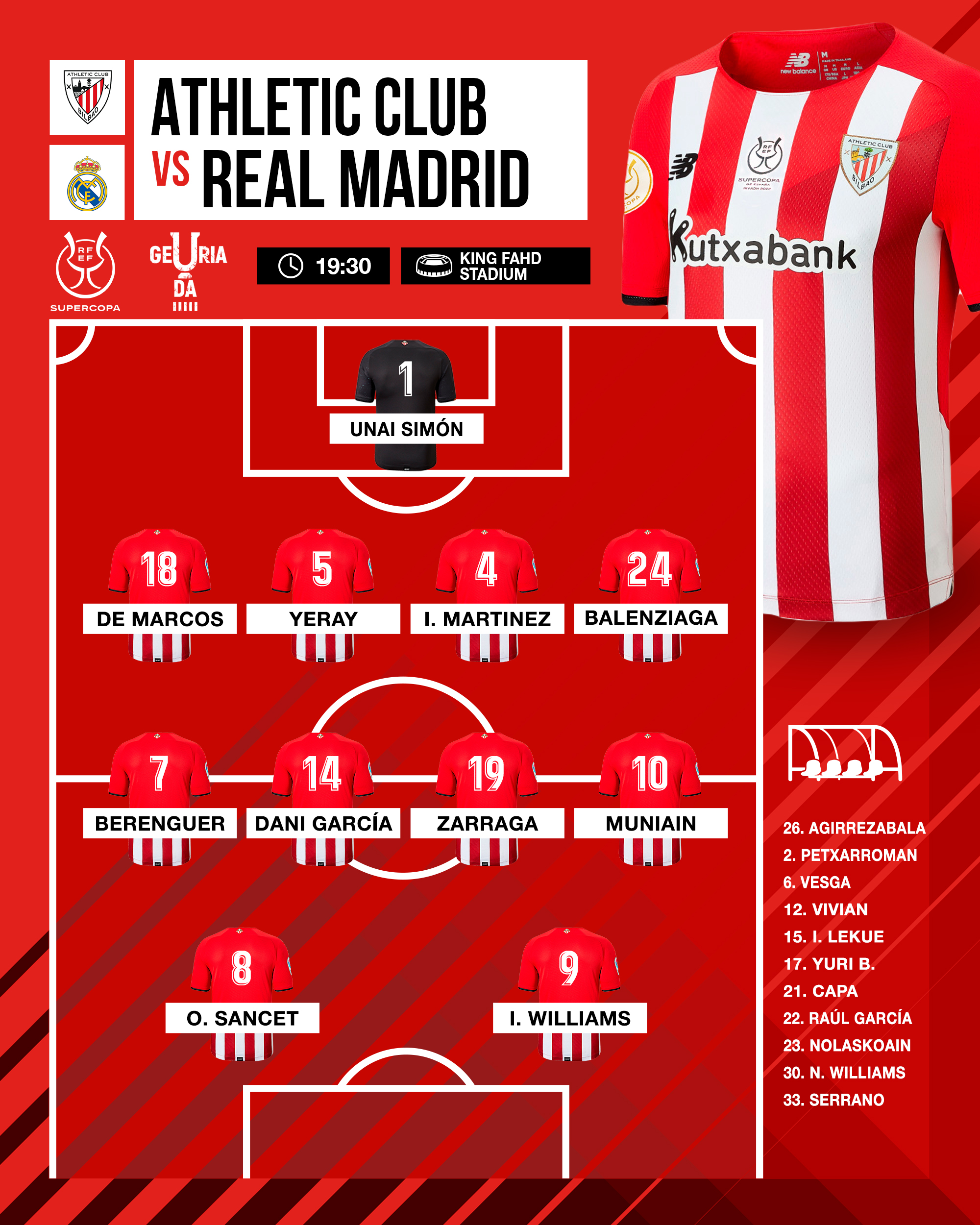 «Атлетик»: Симон - де Маркос, Й. Альварес, И. Мартинес, Баленсиага (Берчиче, 58) - Беренгер (Н. Уильямс, 46), Д. Гарсия, Саррага (Весга, 58), Муниаин (Серрано, 81) - Сансет (Р. Гарсия, 58), И. Уильямс.