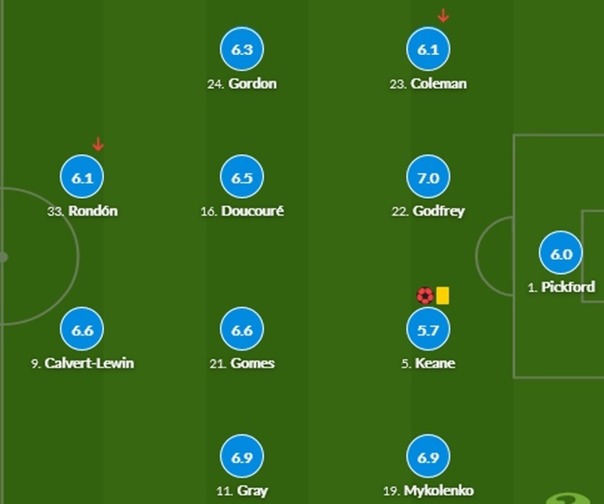 Канал Everton FC News поставил ему 3 бала. Столько же у Коулмана и Кина. Остальные - выше.