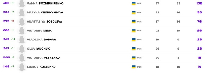 Что касается украинок, то Элина Свитолина потеряла одну позицию, Марта Костюк покинула топ-50 и перестала быть второй ракеткой страны. Ее место заняла Ангелина Калинина, которая дебютировала в первой полусотне. Продолжается крутое пике Даяны Ястремской, она уже близка к вылету из топ-150, хотя в ближайшее время ей практически нечего терять. Также стоит на пороге выбывания в четвертую сотню и Катерина Бондаренко. У остальных изменения незначительные.