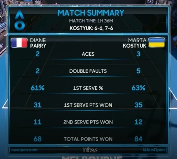 Марта Костюк (Украина) – Диан Парри (Франция) – 6:1, 7:6(2)