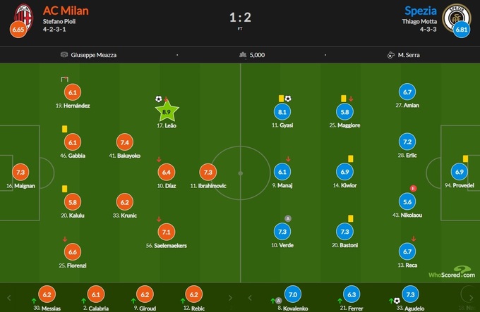 Лучшим игроком матча стал форвард «Милана» Рафаэль Леау, который получил балл 8.9.