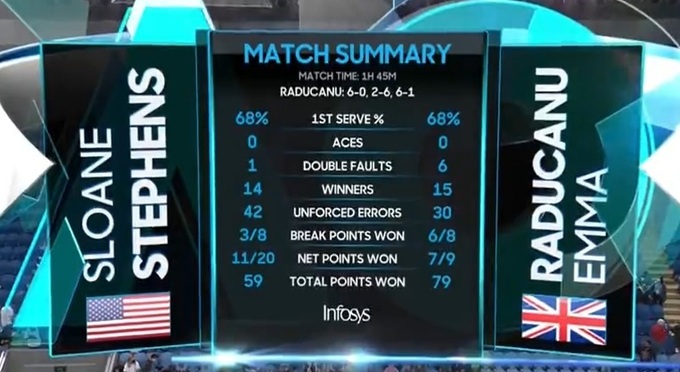Эмма Радукану (Великобритания) – Слоан Стивенс (США) – 6:0, 2:6, 6:1