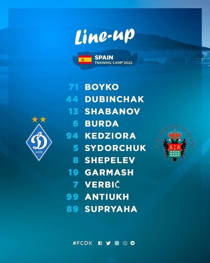 «Динамо» на сборе в Испании проведет первый контрольный матч. Соперником станет клуб испанской Сегунды B «Атлетико Пульпиленьо».