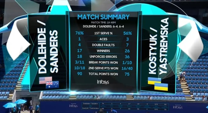 Марта Костюк / Даяна Ястремская (Украина) – Кэролайн Доулхайд / Сторм Сандерс (США / Австралия) – 4:6, 4:6