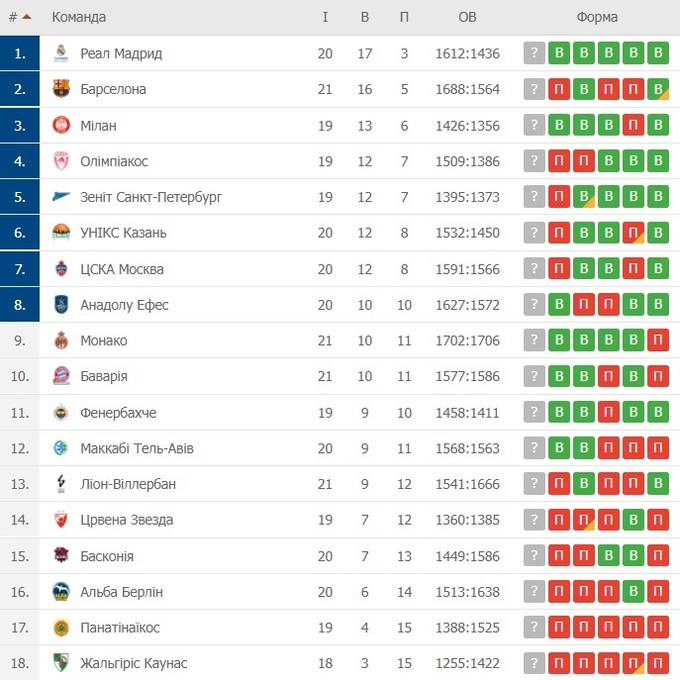 Евролига. Реал разгромил УНИКС, Бавария обыграла АСВЕЛ