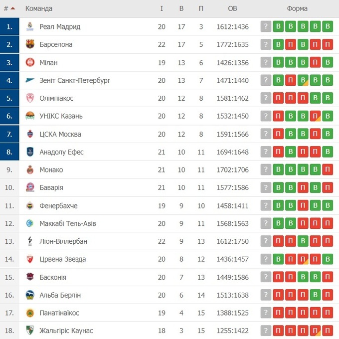 Евролига. Барселона обыграла АСВЕЛ, Зенит сильнее Анадолу