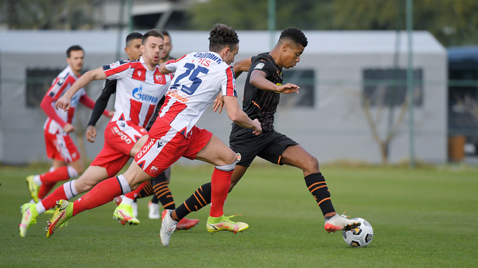 20 мин. Под прессингом на своей половине удерживает мяч Црвена Звезда.