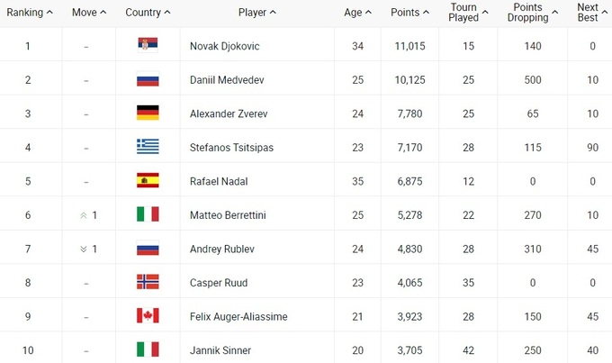 Ассоциация теннисистов-профессионалов опубликовала обновленный рейтинг после завершения Открытого чемпионата Австралии. В первой десятке произошло лишь одно изменение – итальянец Маттео Берреттини опередил россиянина Андрея Рублева. Продолжает лидировать серб Новак Джокович.