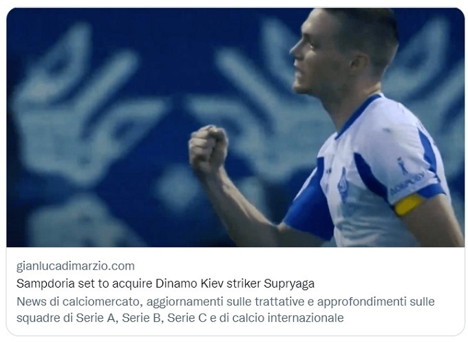 «Супряга прибывает в Италию с 6-месячным опозданием. Еще во время летнего трансферного окна он был на радарах у «Сампдории», но тогда переговоры не увенчались успехом. В прошлом сезоне форвард выходил на поле 31 раз в составе «Динамо», забил 3 гола и сделал 5 ассистов. В нынешнем сезоне на его счету только 6 матчей в УПЛ, Лиге чемпионов и Суперкубке Украины. Теперь его ждет новый опыт в Серии А, с командой Марко Джампаоло, который может рассчитывать на его вклад, чтобы попытаться выбраться из опасной зоны в турнирной таблице Серии А».