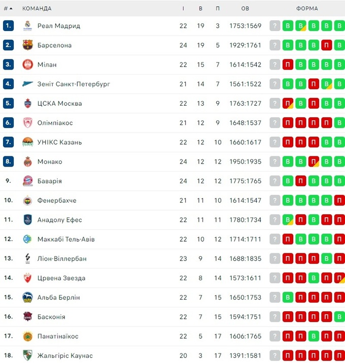 Евролига. Регулярный чемпионат