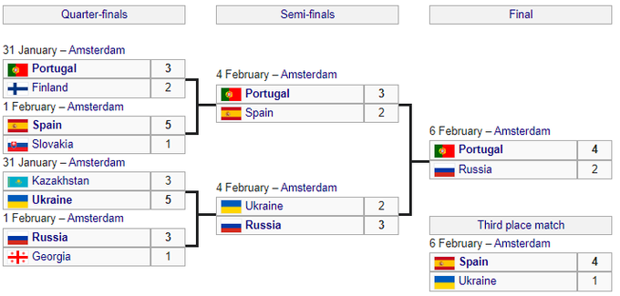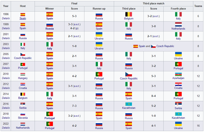 Напомним, в полуфинале Евро-2022 Россия обыграла Украину (3:2), а Португалия сделала камбэк в игре с Испанией (3:2). В матче за бронзу Испания взяла верх над Украиной (4:1).