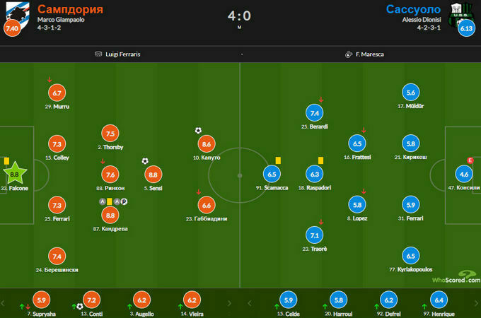 Это провал. Супряга получил самую низкую оценку в составе Сампдории