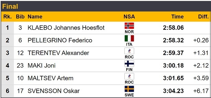 Серебро, как и четыре года назад в Пхенчхане, завоевал итальянец Федерико Пеллегрино. Бронза – у Александра Терентьева из ОКР.