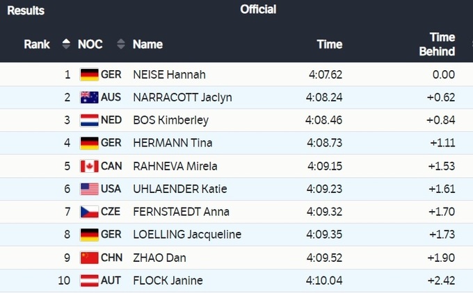 На Олимпиаде в Пекине разыграли комплект наград в соревнованиях по скелетону среди женщин. Золотую медаль завоевала немка Ханна Найзе. Спортсменка показала результат 04:07.62.