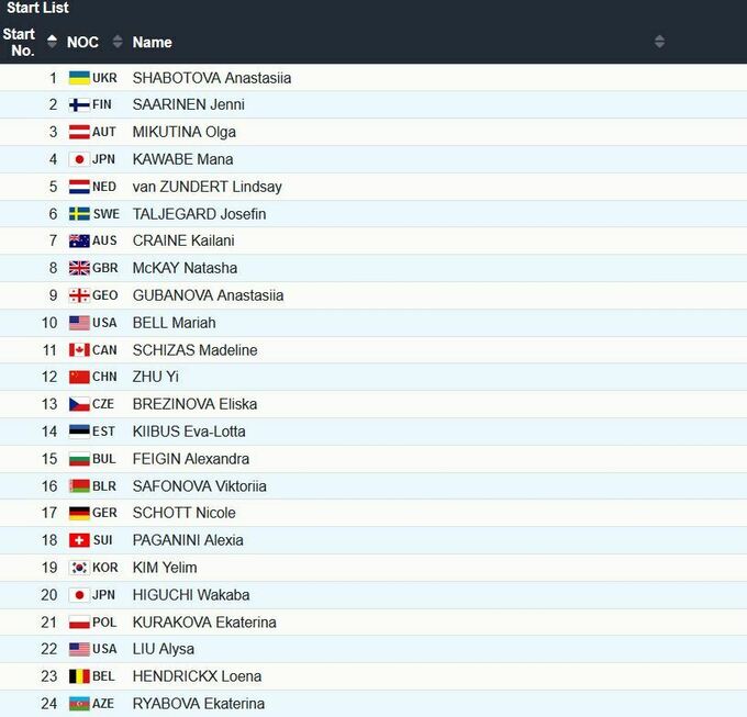 Анастасия Шаботова получила 1-й стартовый номер, и таким образом именно украинская фигуристка откроет короткую программу.