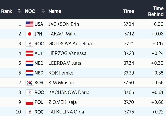 Американская конькобежка Эрин Джексон стала олимпийской чемпионкой на дистанции 500 м. Серебро у японки Михо Такаги, бронза – у Ангелины Голиковой из ОКР.