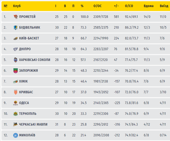 «Прометей» разгромил «Черкасские Мавпы» с разницей в 60 очков (122:62), «Запорожье» уступило «Будивельнику» (69:81), «Тернополь» дома проиграл «Днепру» (63:84).
