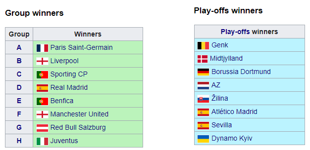 Возможные соперники «Динамо» (победители групп, кроме «Бенфики»)