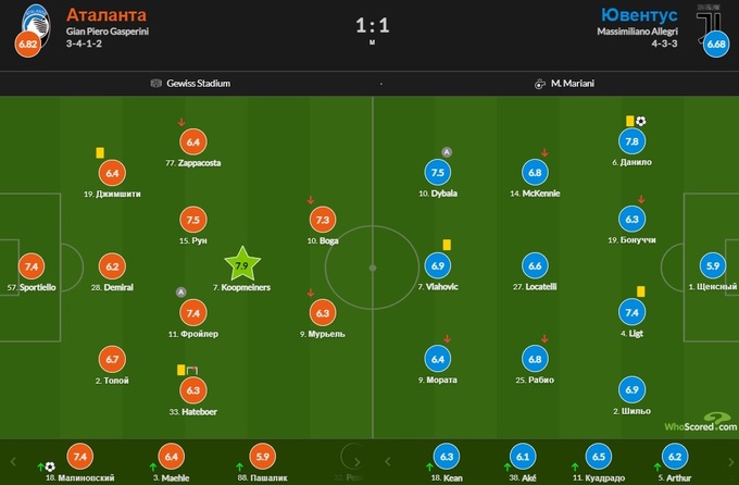 В матче 25-го тура Серии A «Аталанта» сыграла вничью с «Ювентусом» (1:1).