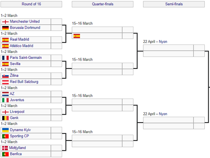 14 февраля в швейцарском Ньоне состоялась жеребьевка плей-офф Юношеской лиги УЕФА, которая определила дальнейшую турнирную сетку.