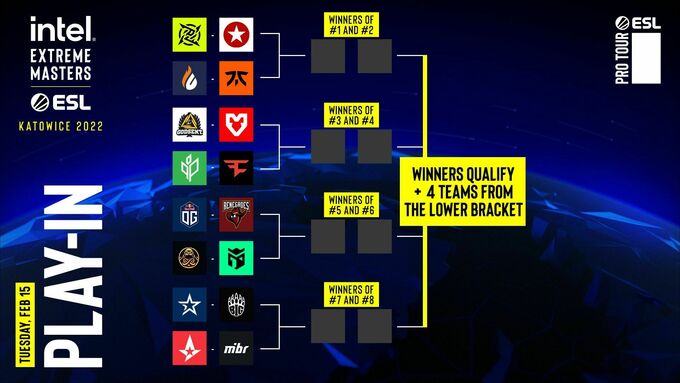 Как мы говорили выше, в IEM Katowice 2022 принимает участие 24 команды. Чемпионат проходит в несколько этапов. Стартует все на стадии Play-In. 15 и 16 февраля 16 команд разыграют восемь путевок в групповой этап, где в бой вступают гранды мирового CS:GO - Natus Vincere, Vitality, G2 и другие.