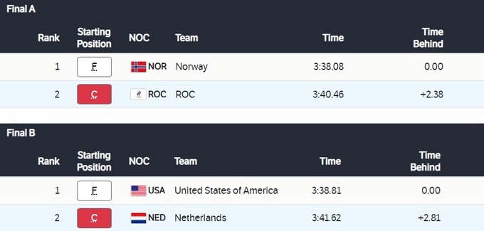 Бронза досталась спортсменам из США, которые в финале B показали лучшее время, чем Нидерланды.
