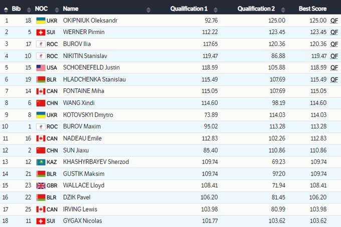 Таким образом, 12 финалистов поведут борьбу медали 16 февраля в 13:00 по Киеву. Среди них будут двое украинцев – Александр Абраменко и Александр Окипнюк.