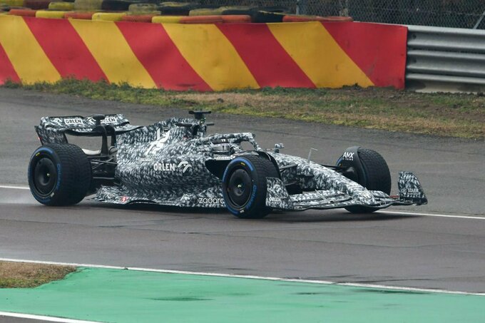 Сейчас машина раскрашена в тестовые цвета. За рулем был Валттери Боттас.