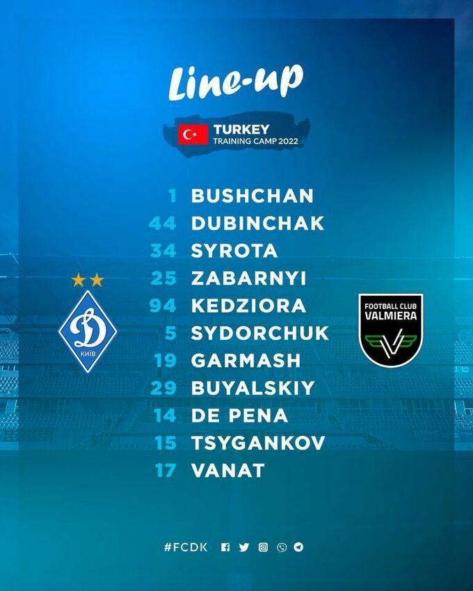 В четверг, 17-го февраля, состоится товарищеский матч, в котором сразятся «Динамо» Киев и латвийская «Валмиера». Матч пройдет в Антальи (Турция), на поле стадиона «Mardan Stadium», начало в 16:00.