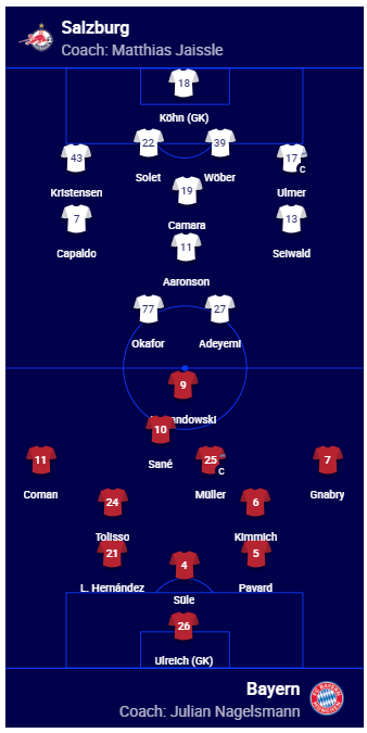 РБ Зальцбург – Бавария. Левандовски будет бить. Стартовые составы команд