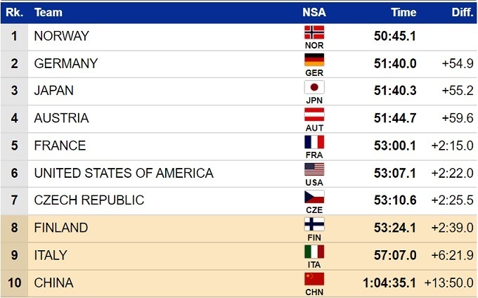 Серебро у сборной Германии, бронза – у Японии. Сборная Австрии сенсационно осталась без медалей. Украина в командном турнире участия не принимала.