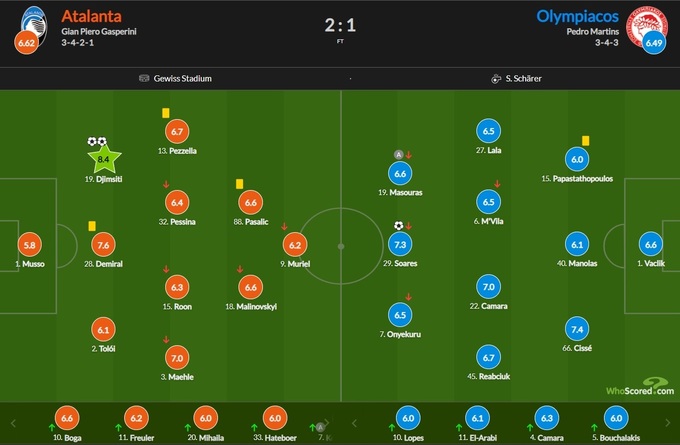 В первом матче 1/16 финала Лиги Европы «Аталанта» обыграла «Олимпиакос» (2:1). Украинский хавбек «Аталанты» Руслан Малиновский вышел в основе команды и провел на поле 65 минут, после чего был заменен.