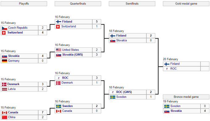 Запланирован финальный матч: Финляндия – ОКР (06:10 по Киеву). В матче за бронзу днем ранее Словакия нанесла поражение Швеции (4:0).