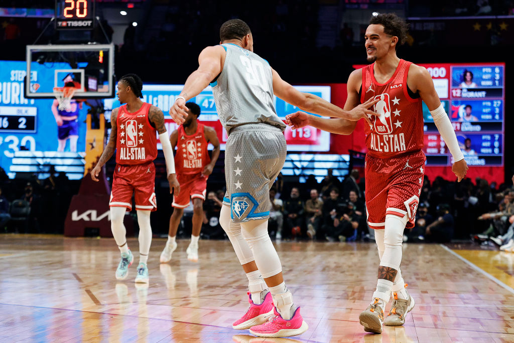 Команда Дюрэнта: Эмбиид (36 + 10 подборов), Янг (13 + 10 передач), Уиггинс (10), Тэйтум (8), Морэнт (6) – старт; Букер (20 + 5 потерь), Болл (18), Мюррэй (17), Лавин (12), Таунс (9), Гобер (6), Миддлтон (5).