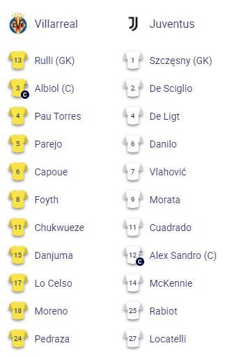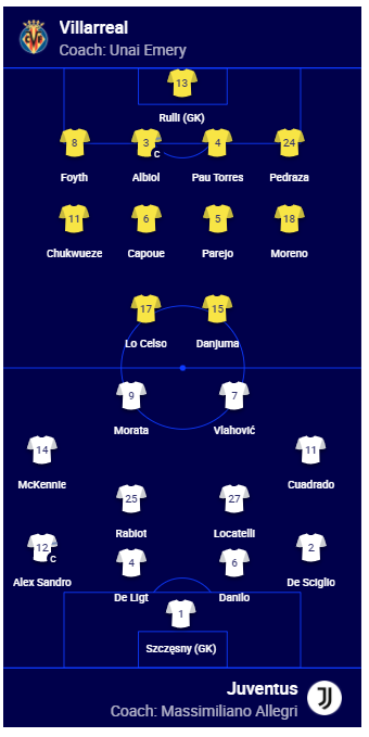 Вильярреал – Ювентус. Морено против Мораты. Стартовые составы команд