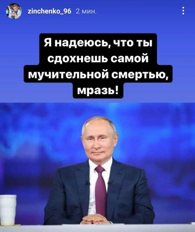 Сдохни, мразь. Инстаграм удалил сторис Зинченко с пожеланием смерти Путину