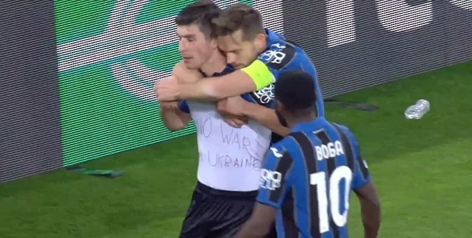После первого гола Малиновский поднял игровую майку и показал футболку с надписью «No war in Ukraine» (Нет войне в Украине):