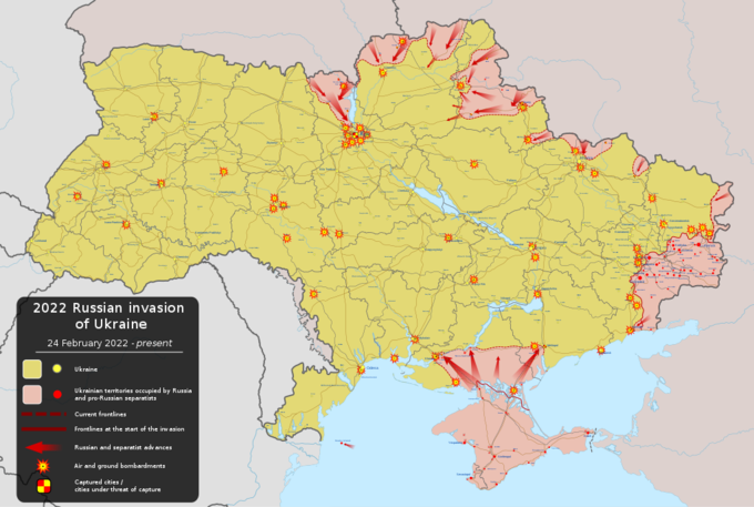 - Украинские военные обороняют Киев, на подступах к которому ведутся ожесточенные бои. Оккупанты пытаются прорваться в столицу. Войска оккупантов подошли вплотную к столице. Вечером в городе раздавались взрывы.