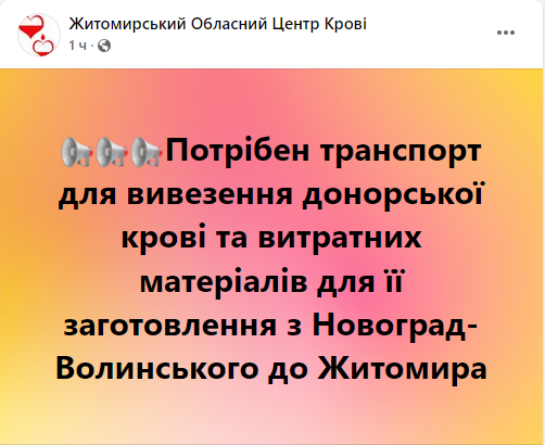 17:23. На станции переливания (Киев) нет крови 4-минус. Просят всех с этой группой крови прийти и сдать для раненых. Киньте это сообщение во все чаты по максимуму.