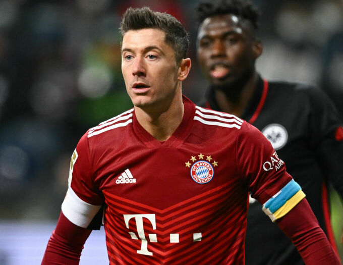 Форвард «Баварии» Роберт Левандовски вышел на матч чемпионата Германии с капитанской повязкой в цветах флага Украины.