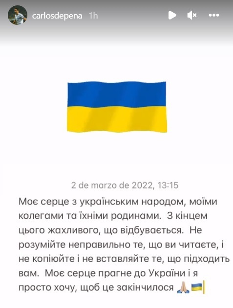 Карлос ДЕ ПЕНА: «Мое сердце с украинским народом»
