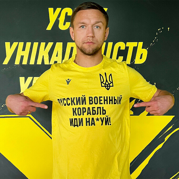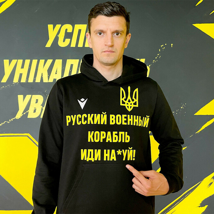 Клуб УПЛ «Рух» выпустил патриотический мерч. На футболках и худи размещен уже легендарная фраза про российский корабль, которому нужно идти нах*й.