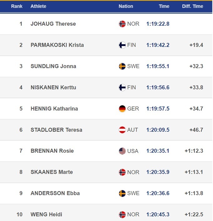 Сегодня в рамках Кубка мира по лыжным гонкам состоялся женский 30-километровый марафон классикой в Холменколлене (Норвегия). Эта гонка стала последней в карьере легендарной Терезы Йохауг, которая вчера объявила о том, что вешает лыжи на гвоздь.