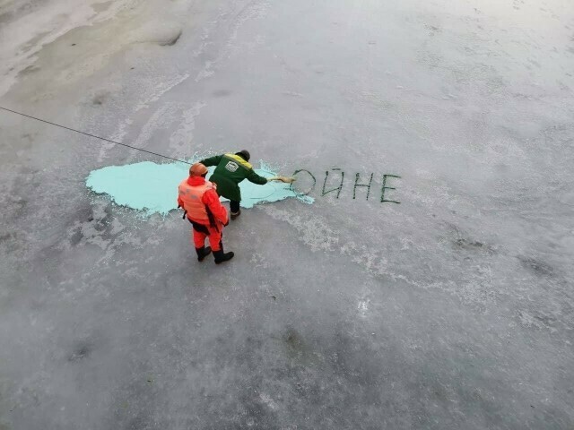 Но лозунгу не суждено было долго просуществовать. Коммунальные службы решили закрасить мнение людей краской прямо на льду.