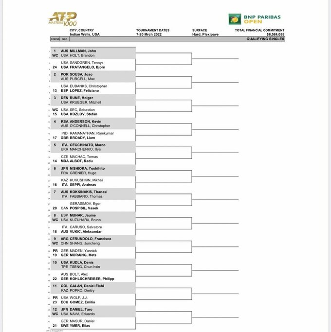 Украинский теннисист Илья Марченко сыграет в квалификации Мастерса в Индиан-Уэллс.