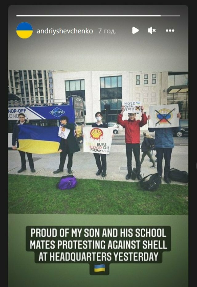 «Горжусь своим сыном и его одноклассниками, которые протестовали у управления «Shell» вчера», – написал Шевченко в инстаграме.