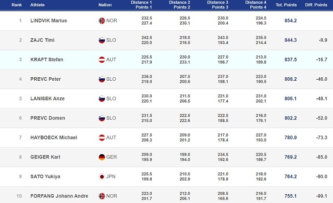 Он опередил словенца Тими Зайца и австрийца Штефана Крафта. Чемпион мира 2020 года, немец Карл Гайгер, защиту титула провалил и стал только восьмым.