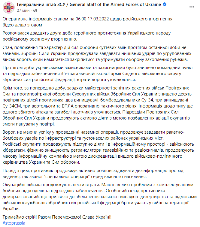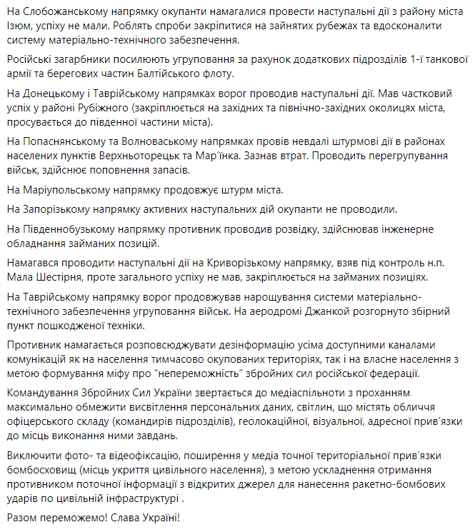 07:05. Утренняя сводка Генштаба ВС Украины.